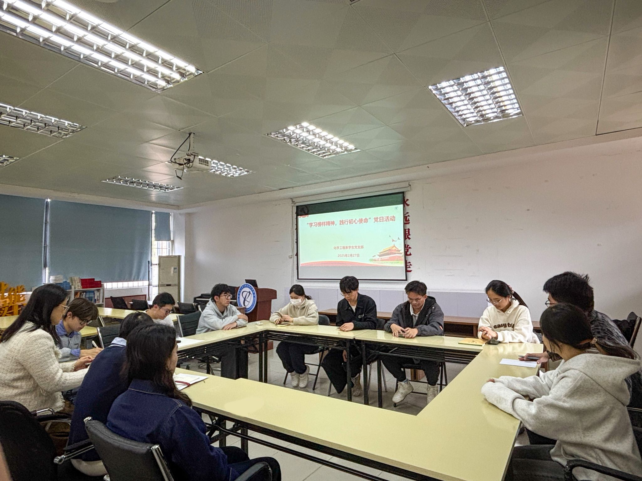 2025年2月27日下午,化学工程系学生党支部在12L102开展“学习榜样精神 践行初心使命”主题党日活动,活动由支部书记涂叶满主持。 全体党员集中观看了《榜样9》专题节目,并围绕“榜样身上哪些优秀品质最打动你”“如何将榜样的精神落实到日常...