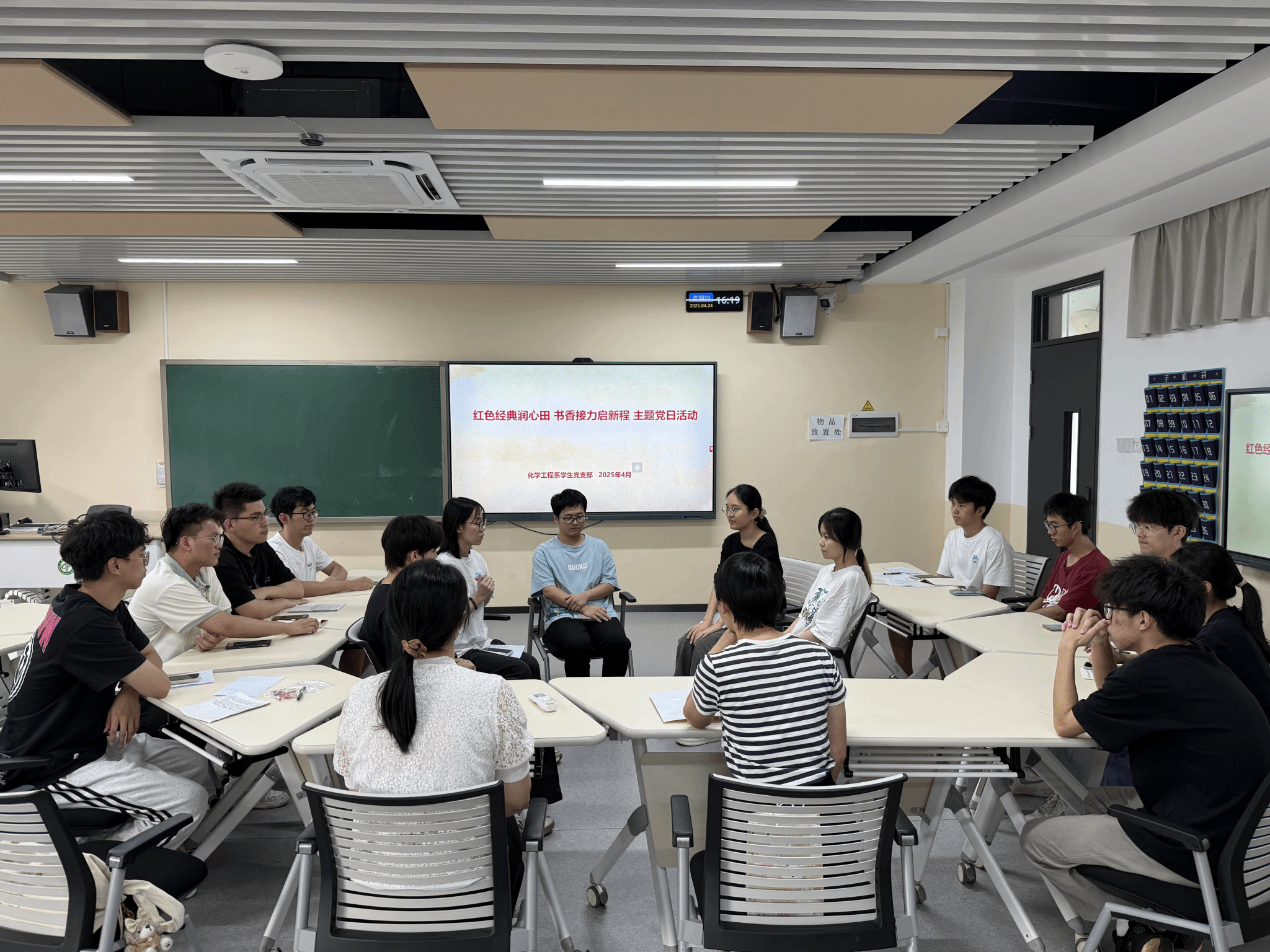 为传承红色基因、淬炼党性修养,2025年4月24日,化学工程系学生党支部组织开展了“红色经典润心田 书香接力启新程”主题党日活动。 活动中,党员们分享了《谁是最可爱的人》《红岩》《百年先锋》等红色经典著作的阅读体会,围绕“信仰的力量...