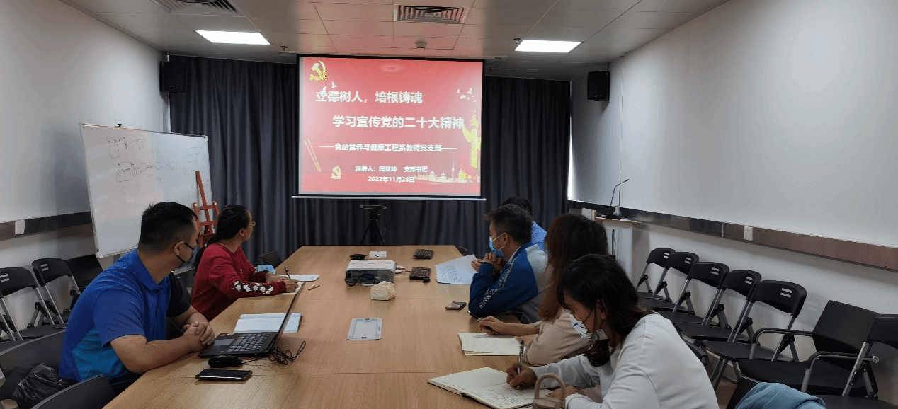 2022年11月28日上午,anime1 食品营养与健康工程系教师党支部在科创院310会议室开展主题党日活动。会议由支部书记闫景坤主持,支部全体党员参加了此次活动。 会议主题为支部书记讲党课《立德树人,培根铸魂——学习宣传党的二十大精神》...