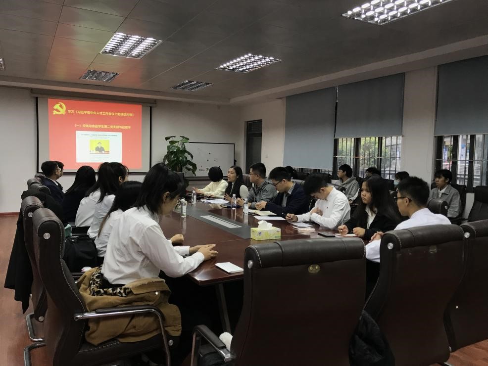 会议伊始,刘哲老师首先带领大家学习了《习近平在中央人才工作会议上的讲话内容》,王波老师和陈思谦老师、李嘉乐同学分别发表学习心得。会议一致明确了青年师生要进一步学习领会习近平总书记重要讲话精神,深入了解新时代人才工作新理念、新战略、新举措,准确把握“八个坚持”的重大要求,做到认识再提高、视野再拓展、行动再提速,以强烈的危机感和紧迫感提升自身竞争优势,直面迎接粤港澳大湾区的挑战和机遇。