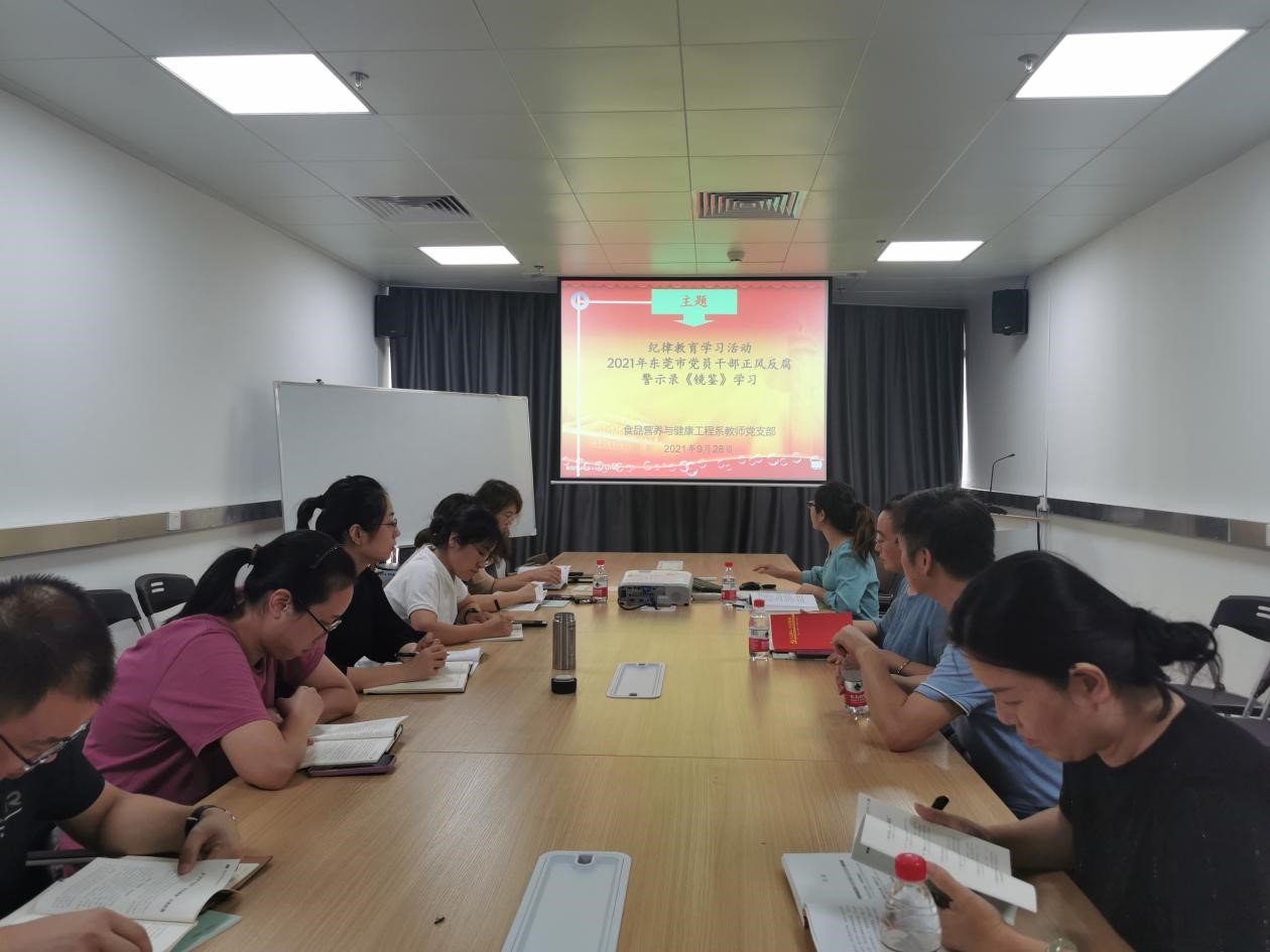 食品营养与健康工程系教师党支部在科创院3楼食品平台会议室开展九月份主题党日活动暨纪律教育、师风师德学习,食品系教师党员参与了此次活动。