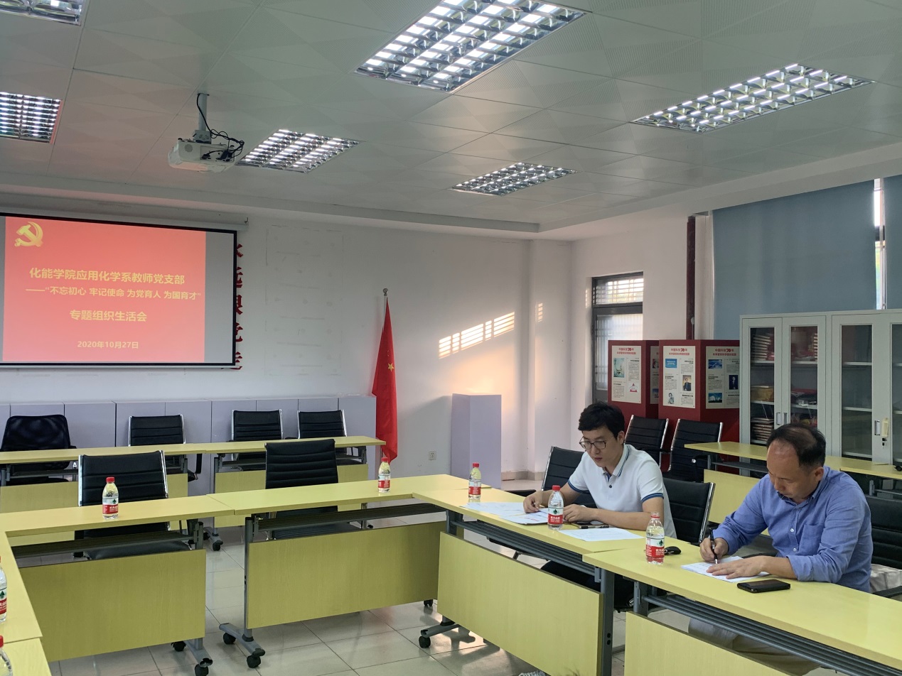 应用化学系教师党支部于2020年10月27日下午在12L102党员活动室召开“不忘初心、牢记使命,为党育人、为国育才”专题组织生活会,会议由支部书记张刚同志主持。