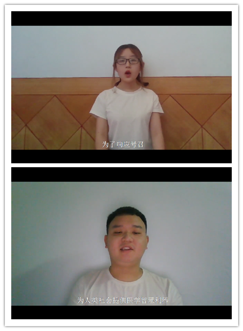 活动在视频《“院士在一线”回顾记录短片》的播放中开幕,匡永欣等三位同学讲述了《钟南山院士的故事》,再现了钟南山院士对百姓生命健康高度负责、心怀家国大义的时代英雄形象;李莉、滕凯、雷振鹏三位同学合唱了歌曲《只要平凡》,用深情的歌喉,弘扬了平凡人不平凡的战“疫”精神。抗疫一线,那些兢兢业业,在各自的岗位默默付出的人,他们平凡但却伟大,凝聚起一股强大的力量,将病毒驱散,保卫家园;许漫媛、李洁、周李拓鹏、程克勉四位同学朗诵了《致敬!援鄂战疫的八位院士》。讴歌了钟南山、李兰娟、王辰、黄璐琦、张伯礼、陈薇、乔杰、仝小林等业内著名的八位院士带领团队齐聚湖北疫情重灾区,在这场艰巨的战役中,义无反顾、挺身而出。他们心忧民瘼而展现的科学精神,标注了专业深度;不辞辛苦、忘我投入,则抵达了精神高度。而贯穿其中的人格魅力,又折射出科学家应具有的家国情怀。他们是院士也是战士,更有国士的责任担当。