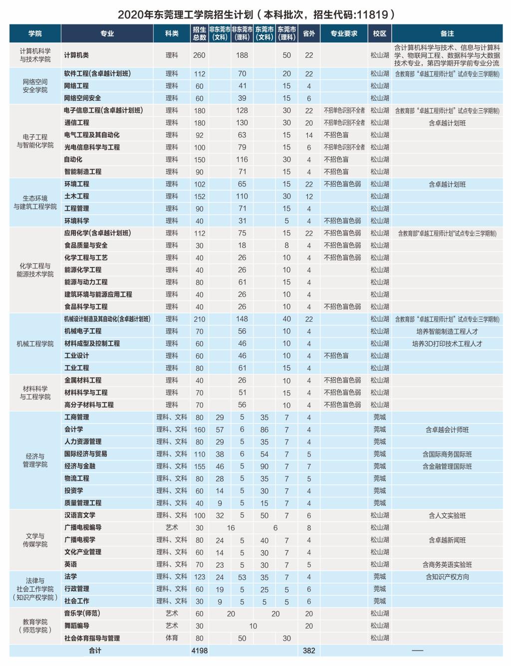2020年招生计划(本科批次,招生代码:11819)