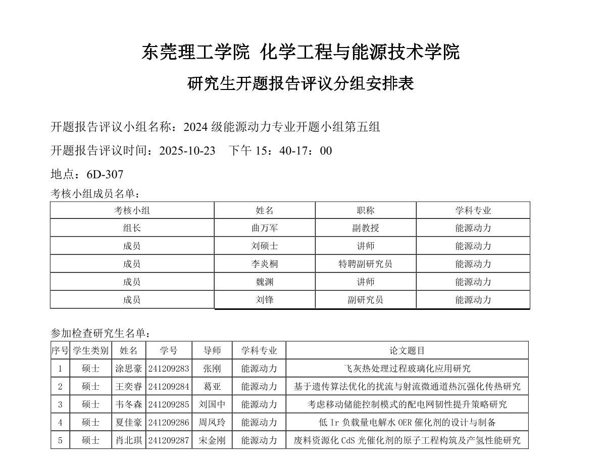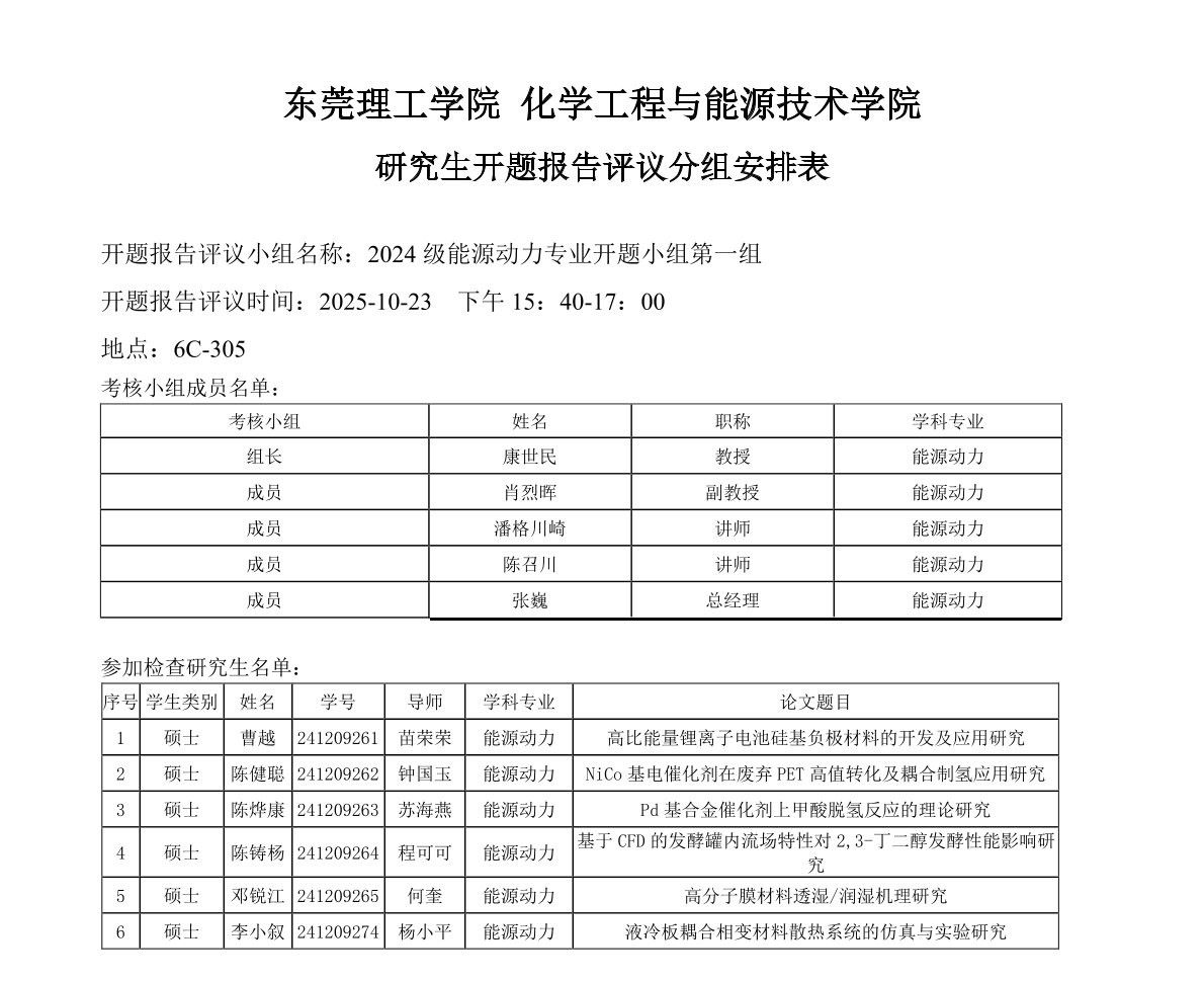 anime1 能源动力学位点2024级研究生开题报告评议安排如下: