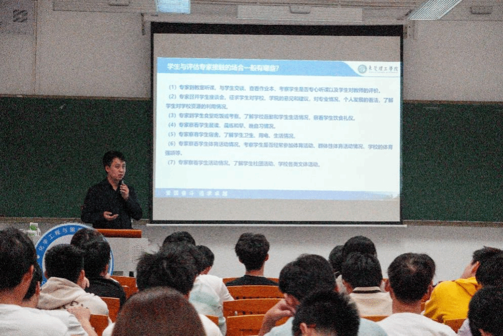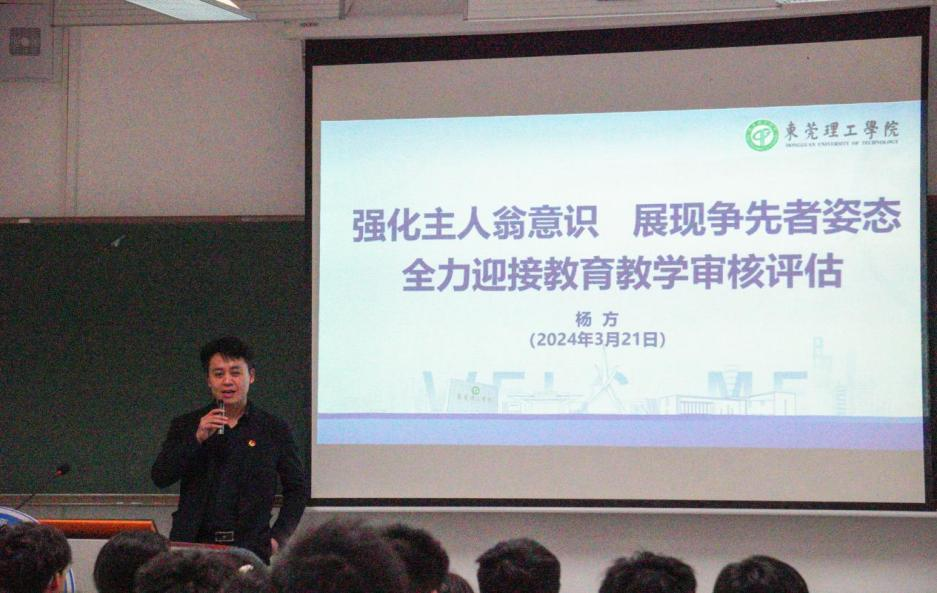 杨方副书记以《强化主人翁意识,展现争先者姿态,全力迎接教育教学审核评估》为题,重点讲解了校史校情相关内容以及本科教育教学审核评估应知应会点,他号召班团干部、学生骨干要发挥带头模范作用,带领身边同学做好本科教育教学审核评估工作的知晓者、参与者和贡献者,在助推学校新型高水平理工科大学示范校建设中彰显青春风采。