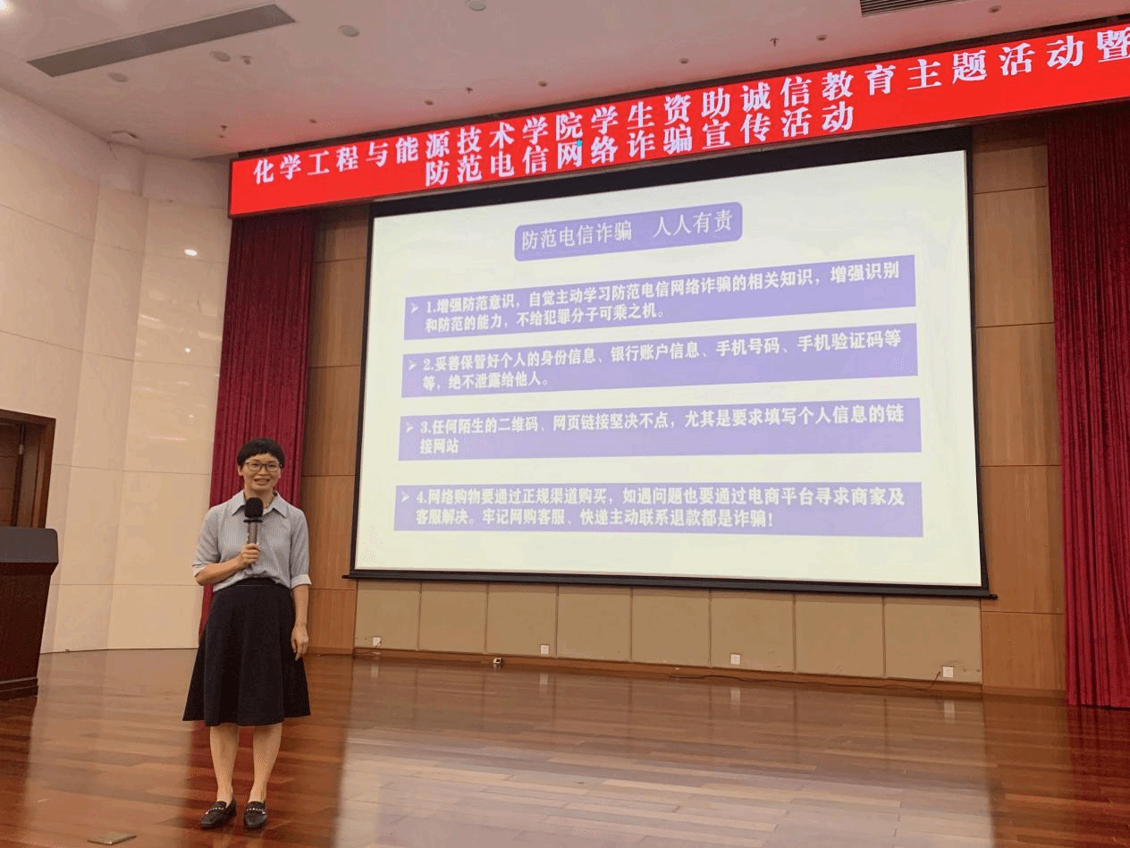 在松山湖校区学术会议中心报告厅开展学生资助诚信主题教育暨防范电信网络诈骗宣传活动,学院2024届毕业生参加。