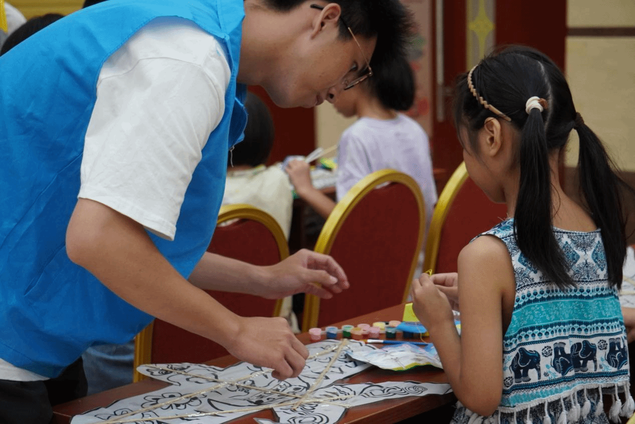 纸鸢系真情,区校心连心。活动最后,黎贝村居委会负责人邀请志愿者们与在场的小朋友一同制作风筝。现场其乐融融、充满欢声笑语。