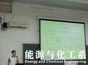 9月10日晚上,能源与化工系新生专业教育大会在教学楼6B102召开。能源与化工系党总支书记李纠,辅导员谢真葵,徐勇军主任以及全体职工和14级新生参与本次大会。
