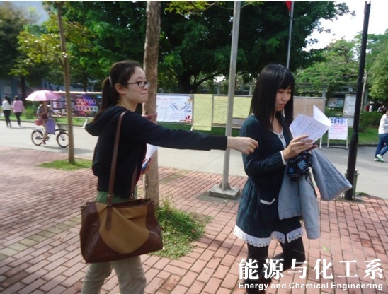 安排好一切之后,活动于22日下午4点准时开始举行。志愿者们在二期饭堂,在一期饭堂,还有美宜佳门口,大超门口,向来往的师生派发宣传传单。志愿者用亲切温和的语气向同学们述说着这次活动的主题,同时时刻不忘记提醒同学一定要加强财务的保管。同学们积极配合,整个流程井然有序,最后,志愿者们大合照,收拾场地离开。