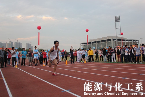 为期两天的运动会,比赛项目分为田径比赛以及趣味游戏比赛。运动会上,我系师生积极参加比赛,在跳高、跳远、铅球、4×100接力等比赛中均出现了我系师生的身影。另外,我系首度与外语系合作参与趣味游戏,包括王子背公主,鲤鱼跳龙门,步步高升,合骑毛毛虫,百人拔河,10000米接力赛。其中,在骑毛毛虫比赛中,我系同学更以整齐的步伐获了第一名,而在步步高升和10000米接力赛中我系均获第2名。而教工组在趣味游戏混合车轮滚滚、鲤鱼跳龙门也获得了较好成绩。在田径运动中,系辅导员谢真葵在教工组的男子100米比赛中斩获了第一名,王文豪老师也获得了第8名。此外,在各项的比赛中,能源与化工系的师生们也获得了骄人的成绩。如下图: