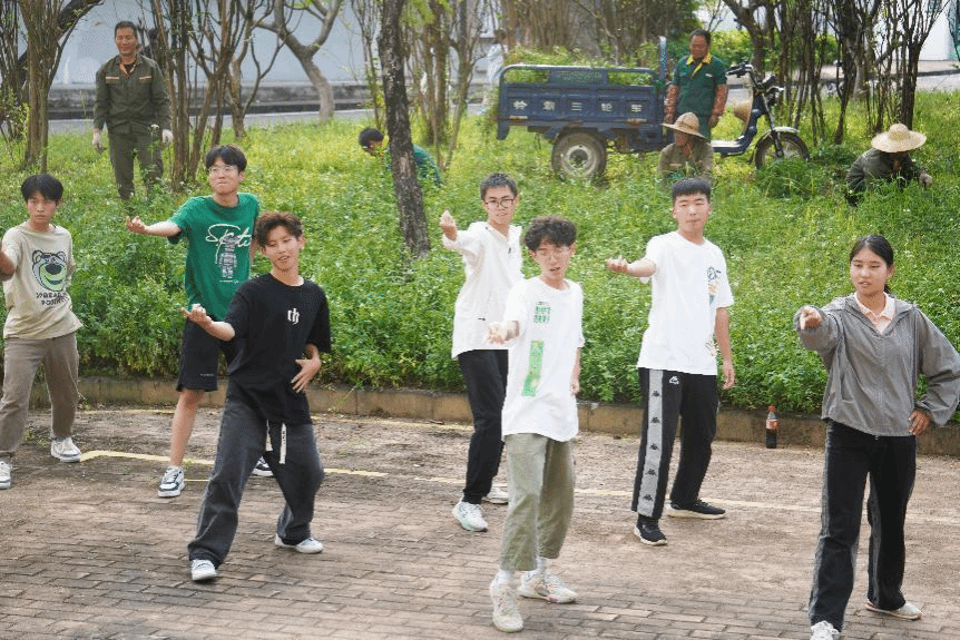下午,学员在线索的指引下找到各自的领队。为了更好地激发学员的激情,树立积极沟通相互信任、团结协作、培养团队的意识。学员在有限的次数下学习一段舞蹈并展示表演,负责人们对学员的团队展示效果给予了建议,学员们积极进行总结反思。