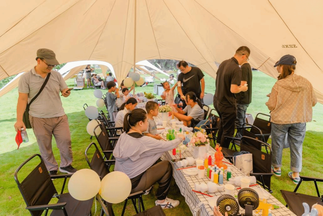 上午9点左右,学院分工会委员与工作人员一起布置场地,迎接老师和小朋友的到来。上午10点,老师们带着小朋友们陆续来到基地,一来到就被营地绿草盈盈,童趣童真、富有创造性的布置所吸引,迫不及待的加入到流体熊/兔DIY手工环节,纷纷亲手调配颜料,为自己的流体熊/兔玩具上色,制作属于自己的儿童节礼物。