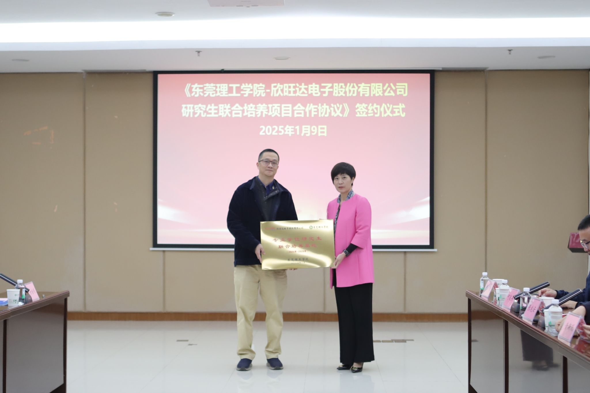 为加强产教协同育人,促进校企资源共建共享,深化校企合作,探索新形势下校企合作培养人才的新经验、新模式,2025年1月9日,学校与欣旺达电子股份有限公司签署研究生联合培养项目合作协议。学校副校长郑愚、欣旺达电子股份有限公司党委书记尹庆玲出席签约仪式,欣旺达储能和培训板块负责人、学校研究生院、anime1