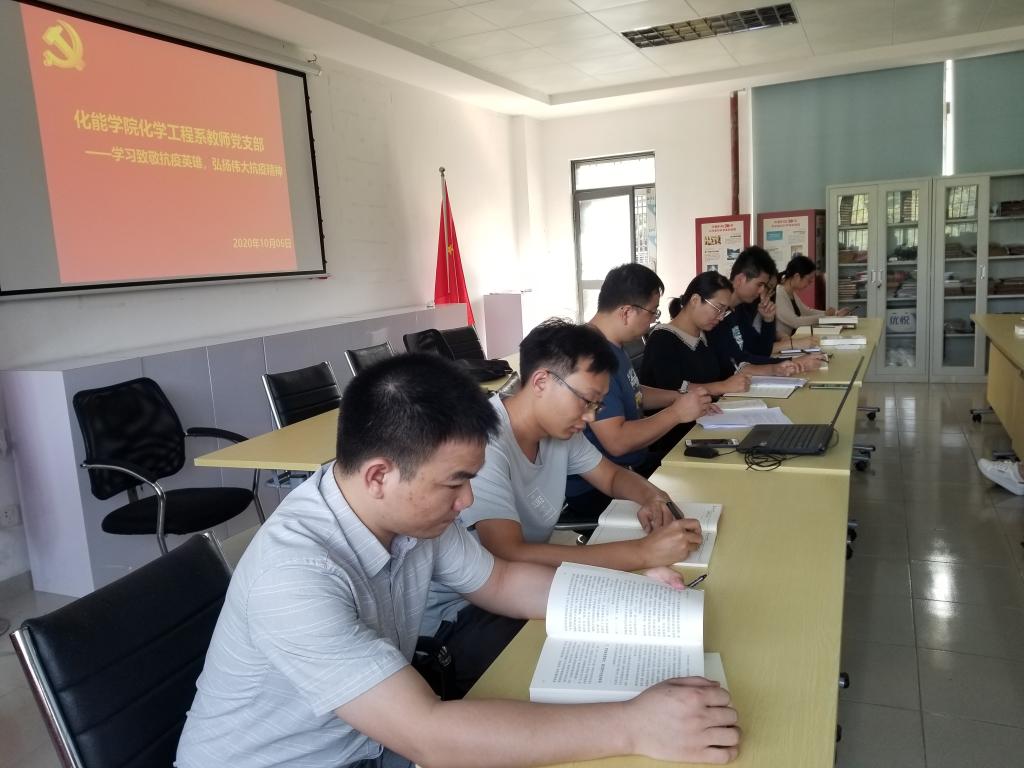 化学工程系党支部在机电化学楼12L102开展“学习致敬抗疫英雄,弘扬伟大抗疫精神”主题党日活动。会议由化学工程系教师党支部书记傅小波主持。