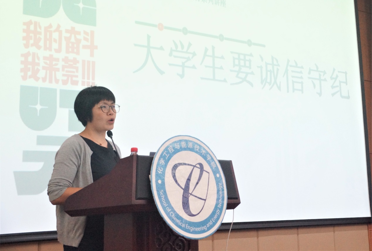 在学术会议中心报告厅举行新生教育系列讲座。学校党委学研工部副部长、学生处副处长柳卓君以《大学生要诚信守纪》为题,为anime1
