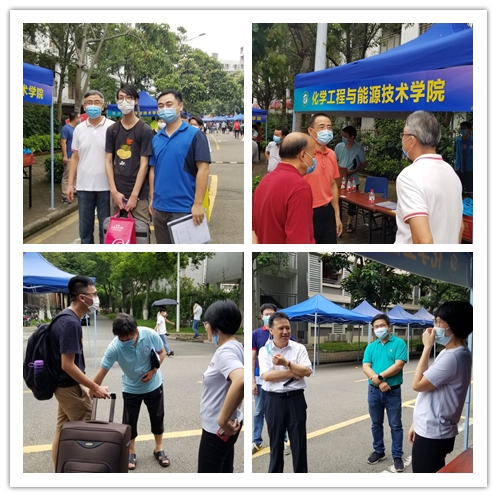 部分教职工迎接返校学生,帮助学生搬运行李,同他们攀谈返校感想,并预祝化能师生返校成功。随后,返校毕业生到其他两个接待处上交健康卡与领取毕业纪念品。在整个过程中,师生情浓,同学之间互帮互助,温暖充斥校园之中。