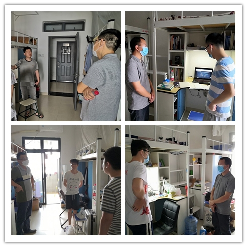 在接送学生行李至寝室后,学院教职工与毕业生班级的班主任前往学生宿舍,探望返校学生,落实疫情防控工作,慰问返校学生的生活、就业、考研等情况。