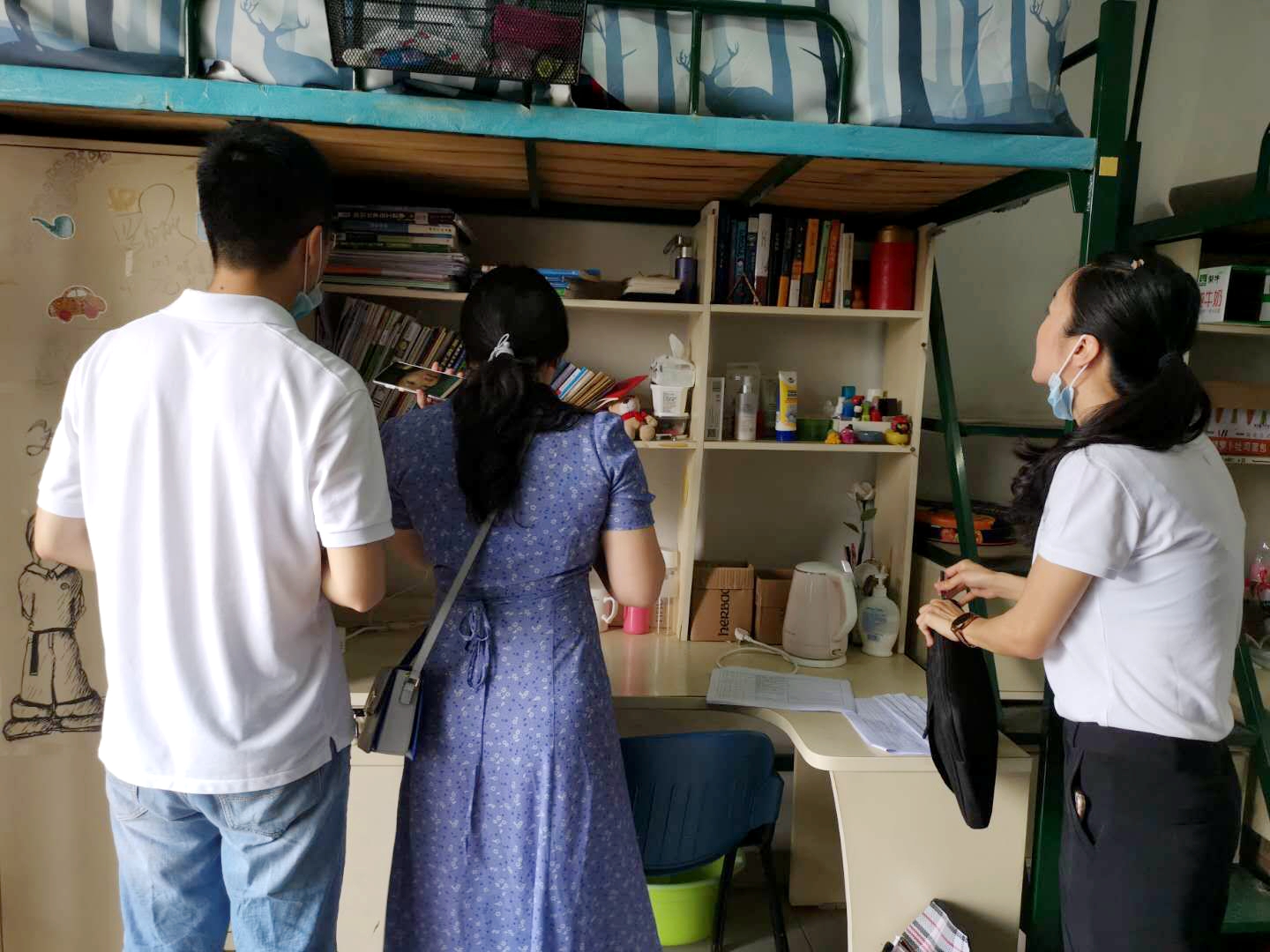 党委组织教工党员志愿者联合社区宿管、社工等,展开“云走寝”活动。
