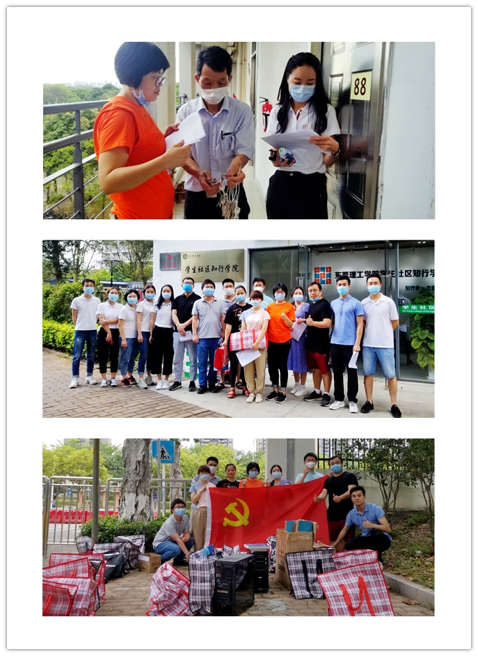 的教工党员,在学院党委副书记柳卓君的带领下,在化工系教工支部书记傅小波和能源系教工支部书记何清的组织协调下,学工团队全体辅导员以及部分班主任代表分组走访了莞馨、莞雅、莞博、莞逸、莞华五个社区共百余间寝室,对有需求的学生进行了走访检查和学习物资整理打包。