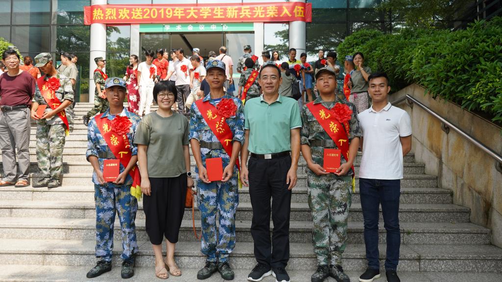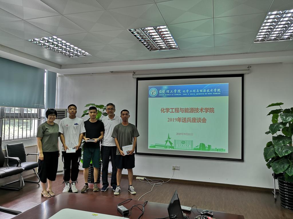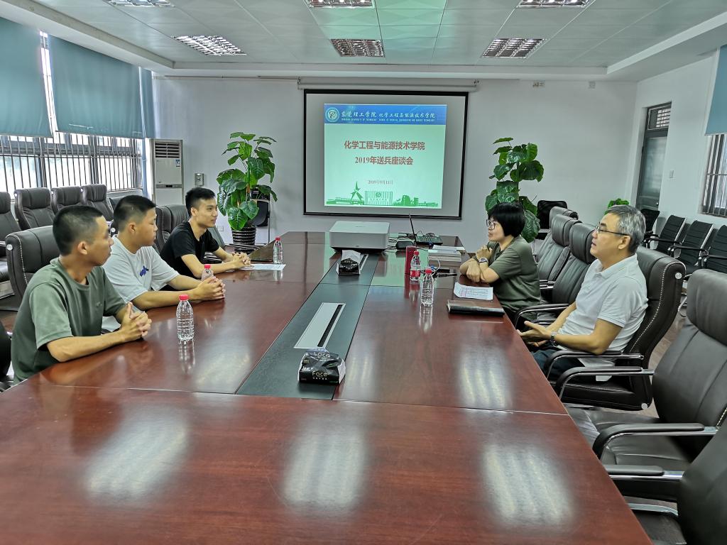 在会议室12L103举行2019年送兵座谈会。学院党总支书记夏勇、党总支副书记柳卓君、学工办负责人谢真葵,以及anime1