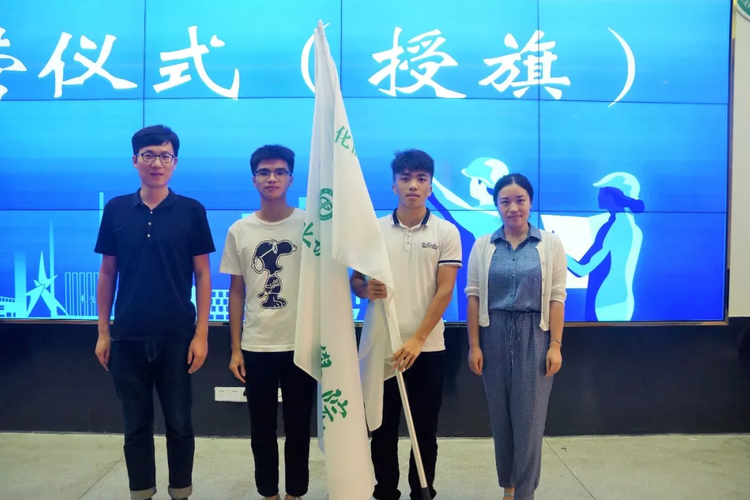 政治辅导员刘哲与应化系主任张刚分别为夏令营学生负责人授“暑期三下乡”社会实践队旗与夏令营营旗,夏令营负责人彭煜钦与温浪涛上台接受旗帜。授旗后,各组同学分别展示了团队文化。“鱼跃龙门,畅游化能。”一句句响亮的口号激荡在整个会场上空,奏响了夏令营活动的序曲。