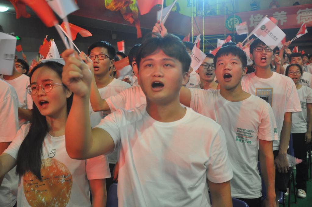 合唱队以一首《祖国给我理想》压轴登场,震撼全校。100余名师生组成的“硬核”队伍中,书记夏勇、院长徐勇军等学院党政领导班子全部带队登台。随着朗诵激昂的推进,台下全体化能学子起立,挥动着手中的小旗,欢呼阵阵。台上台下,交相呼应,共同喊出“以青春之我,创建青春之理想,青春之国家,青春之民族“的理想和决心,洪亮的口号震荡在每个人心中,滂湃的歌声响彻在校园上空。