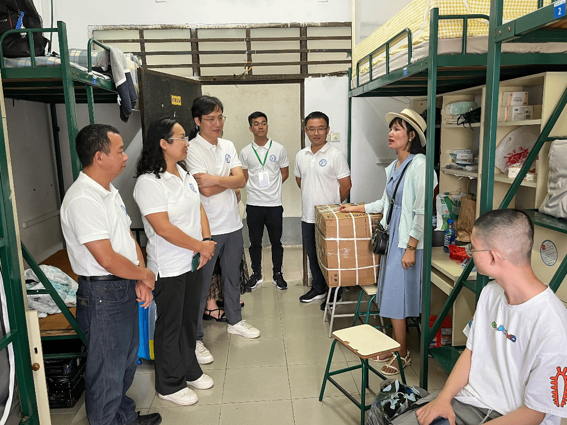 党委书记尹辉斌、党委副书记李利平、副院长黄斯珉、副院长张刚、副院长何运兵、各年级政治辅导员以及23级新生班主任前往迎新现场,慰问关怀志愿者,详细了解工作情况,深入新生宿舍进行慰问。在走访宿舍过程中,学院领导与新生和家长亲切交流,对新生的到来表示热烈欢迎,询问其假期生活及到校感受,并且耐心细致地解答学生的疑惑、勉励同学们尽快融入大学新生活,珍惜时光,勤奋学习,努力实现人生理想,不负青春,不负时代,绽放青春光芒。新生们纷纷对学院领导的到来表示由衷的感谢,并表示将会尽快调整状态,积极融入化能大家庭,不辜负学校、老师和家人的厚望。