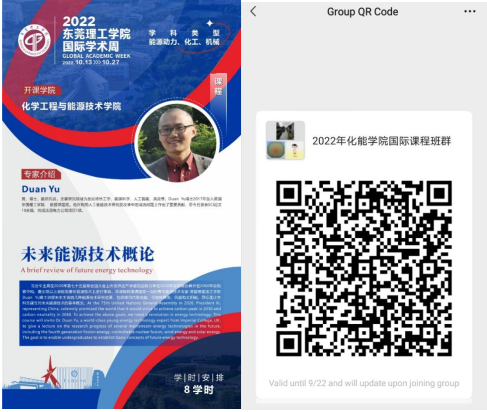 本届国际学术周,anime1 将开展一门国际课程,邀请英国帝国理工学院Duan Yu博士讲授“未来能源技术概论”,助教为何奎博士,计划采用线上线下结合的方式进行,以下是专家简介和国际课程的内容简介,以及国际课程的海报和预报名微信群,请感兴趣的同学提前加入微信群,向老师了解具体课程信息,包括授课时间、方式和内容等。