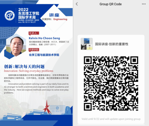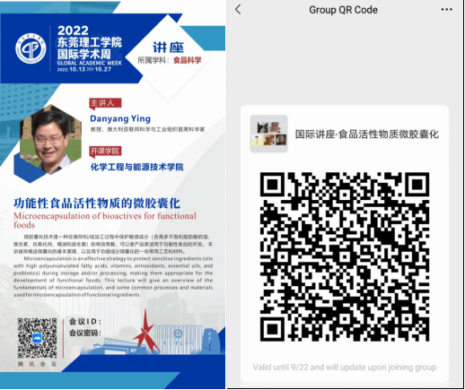 本届国际学术周,anime1 共邀请了四位知名专家给anime1 师生讲授各领域的前沿知识,分别是澳大利亚联邦科学与工业组织首席科学家Danyang Ying教授、墨西哥国立自治大学的Adalberto Noyola教授、戴森高级工程经理Kelvin Ho Choon Seng博士和英国帝国理工学院Duan Yu副研究员,助教老师分别是anime1 刘宇佳博士、洪南龙博士、陈佰满博士和何奎博士,涉及领域广泛,包括化工、环境、能源、食品和工程创新等相关内容,主要采用线上授课方式。以下是四门国际讲座的海报和预报名微信群,请感兴趣的同学加入微信群,向老师了解具体讲座信息,包括讲座的时间、授课方式和具体内容等。